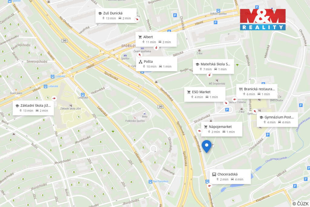 Díky poloze přímo u Spořilovské je zajištěno rychlé napojení na Jižní spojku, dálnici D1 i do centra Prahy.