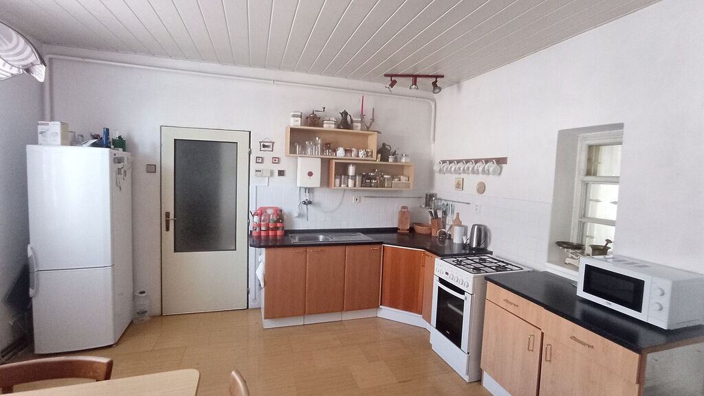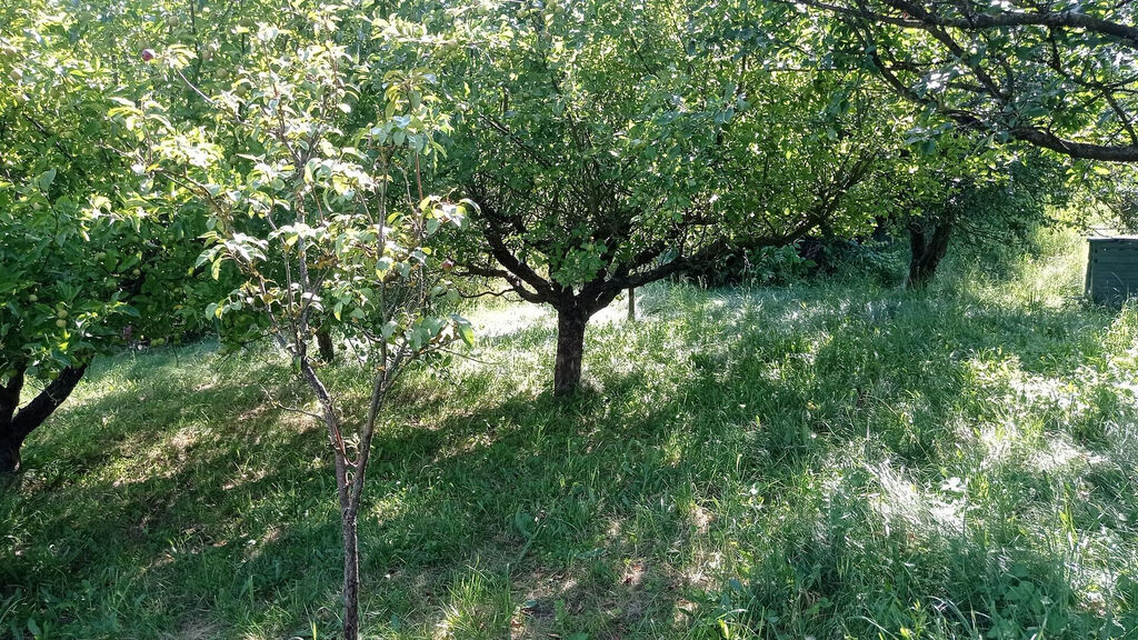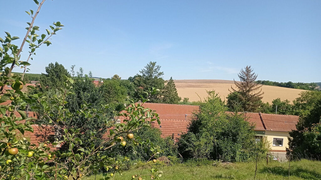 Jistě oceníte klid uzavřeného dvora, který poskytuje soukromí. K domu také patří prostorná zahrada s ovocnými stromy, která je sice svažitá, ale nabízí krásný výhled na okolní krajinu.