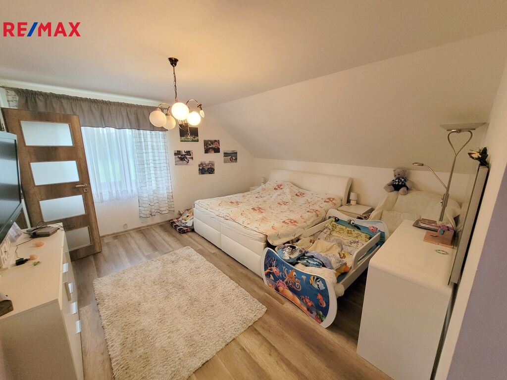 • Patro: V patře se nachází tři dětské pokoje, které poskytnou dostatek místa pro hry i učení. Prostorná koupelna s vanou a toaletou pak zajistí komfort pro celou rodinu.