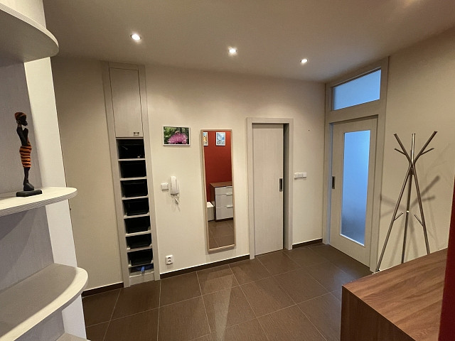 Kompletně zrenovovaný interiér. Kousek od trmvajových linek či stanice metra.