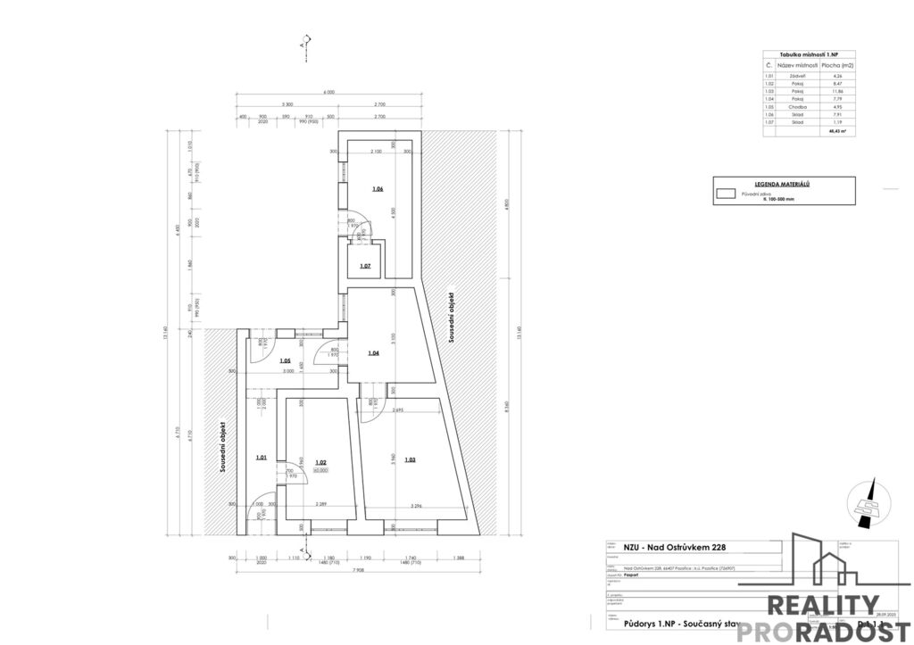 Nabízíme k prodeji řadový rodinný dům v Pozořicích. Zastavěná plocha a nádvoří o celkové výměře 120 m2 v okrese Brno- venkov , který je vhodný jako investice nebo ke kompletní rekonstrukci dle vlastních představ. Součástí prodeje je také vypracovaný stávající stav RD k čerpání dotačního titulu programu Nová zelená úsporám. Rodinný dům lze rozšířit o půdní vestavbu. Po realizaci rekonstrukce s půdní vestavbou by užitná plocha domu činila cca 70 m2 . Situace stávajícího stavu na první patro je vypracovaná projektantem s možností vyřízení dotací k rekonstrukci a výhodného financování z dotačního titulu s úrokovou sazbou 3%. Dům je částečně podsklepený. V RD je zavedená elektřina. Voda, plyn a kanalizační přípojka se nachází na hranici pozemku. Za domem se rozprostírá menší zahrádka, ideální pro relaxaci. Pozořice se nachází v okrese Brno-venkov, vzdálené přibližně 15 km východně od Brna. V obci se nachází kompletní občanská vybavenost – škola, školka, obchody, pošta i zdravotní služby. Energetický štítek nebyl dodán majitelem, proto je uvedena třída G. Pro více informací či domluvu osobní prohlídky kontaktujte makléřku.