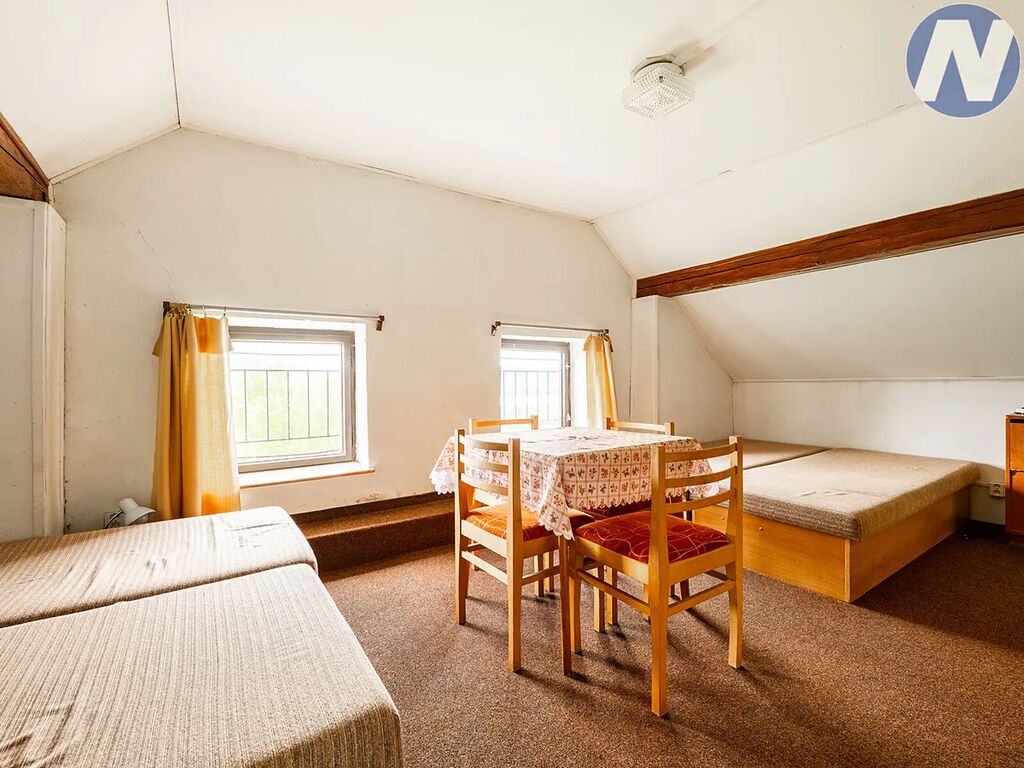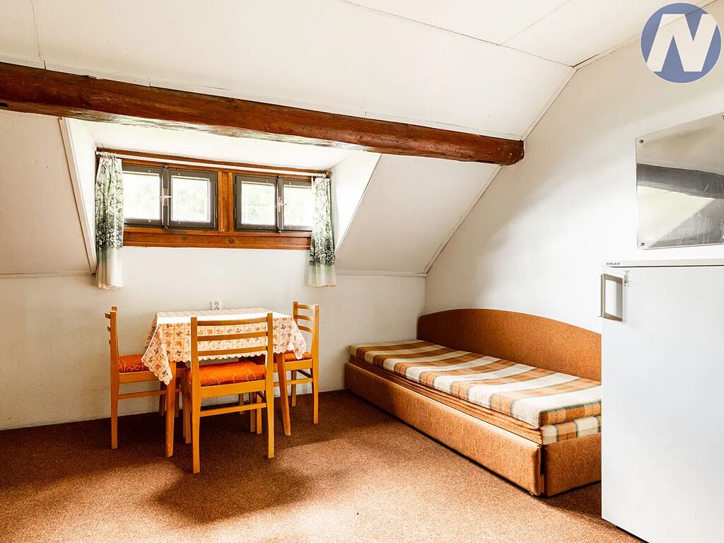 Nabízíme rodinný dům o podlahové ploše 140 m² s pozemkem o výměře 480 m2, který je připraven k okamžitému užívání. V přízemí se nachází společenská místnost s kamny nyní využívána jako společenská jídelna. V druhé části je místnost s krbem. V podkroví se nachází několik ložnic, které lze variabilně oddělit a společná kuchyňka. Majitelé ocení ekologický septik, elektrický odběr je napojený. Pozemek chráněný lesem je ideální pro dětské hry, grilování nebo relaxaci v houpacím křesle.