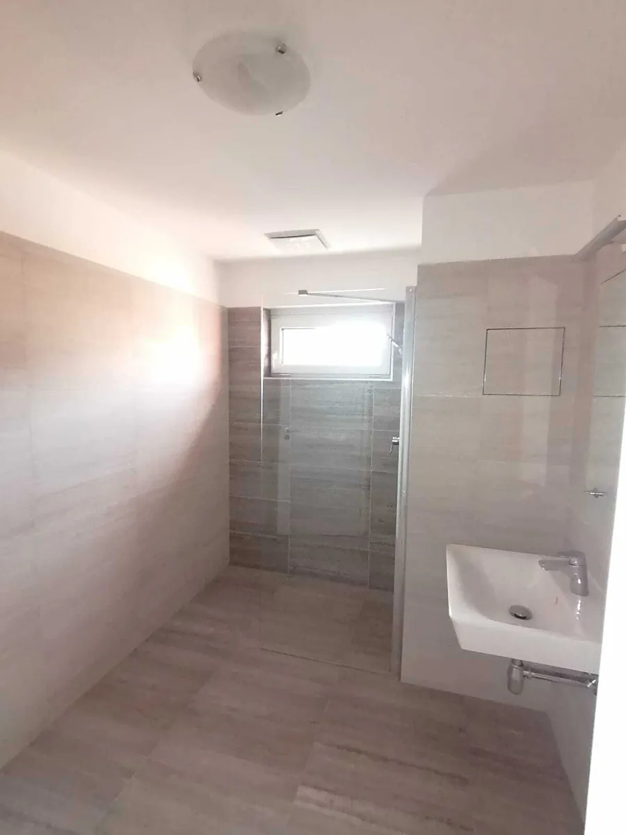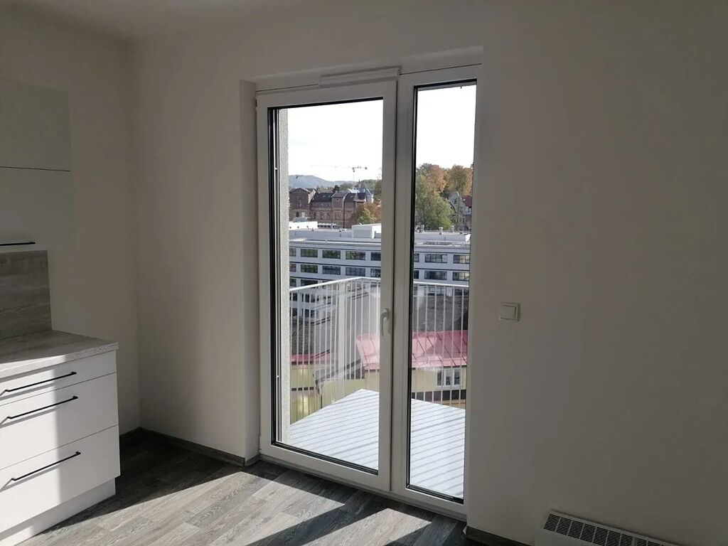 Pronájem krásného bytu v nově postaveném domě v ulici Tatranská – rezidence Nábřeží. Byt má výměru 60m2 a je v 5. patře. Orientován je na jihozápad. Má výbornou dispozici – po vstupu do prostorné předsíně, kde je vestavěná skříň, jsou dveře na WC, koupelny a obou místností. V obytné místnosti je vchod na balkon o výměře 4,3m2. Obytný prostor je velmi prostorný a je možnost ho rozdělit na kuchyňský kout s jídelnou a obývací pokoj. Dále je zde ložnice s vestavěnou skříní. Koupelna je s velkým sprchovým koutem, umyvadlem, zrcadlem a osvětlením. V koupelně je okno a přípojka na pračku a sušičku. Kuchyňská linka je vyrobena na míru a je vybavena elektrickou varnou deskou, sporákem, vestavěnou myčkou, digestoří, dřezem a baterií. Na všech oknech jsou venkovní žaluzie na dálkové ovládání, v místnostech jsou LED světla. K bytu patří sklepní koje ve 2.patře domu, která má výměru 4,1m2 a v tomto patře je i kryté parkovací stání. Vstup do domu je na čip a ovládání domovních dveří je i z bytu. Vjezd k domu je pouze přes bránu na dálkové ovládání. Novostavba domu je velmi zdařilá, energeticky nenáročná ( skupina B) – okna jsou trojskla, kvalitní zateplení, venkovní žaluzie. V domě jsou 2 výtahy. Úklid domu je prováděn úklidovou službou. Výhodou je výborná poloha, v centru, nedaleko cyklostezky, nádraží a všech dalších služeb.