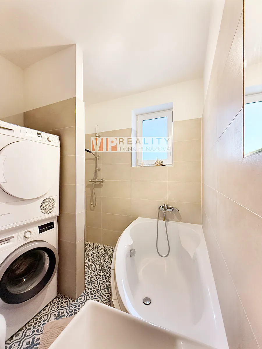 Celkově jde o příjemné, moderní a útulné bydlení, které kombinuje komfort novostavby s výhodami rodinného domu – vlastní zahrádka, terasa, bazén, garáž i klimatizace.