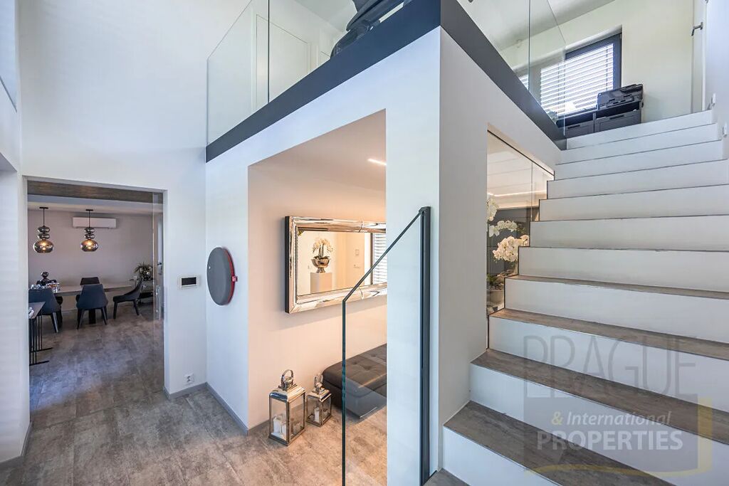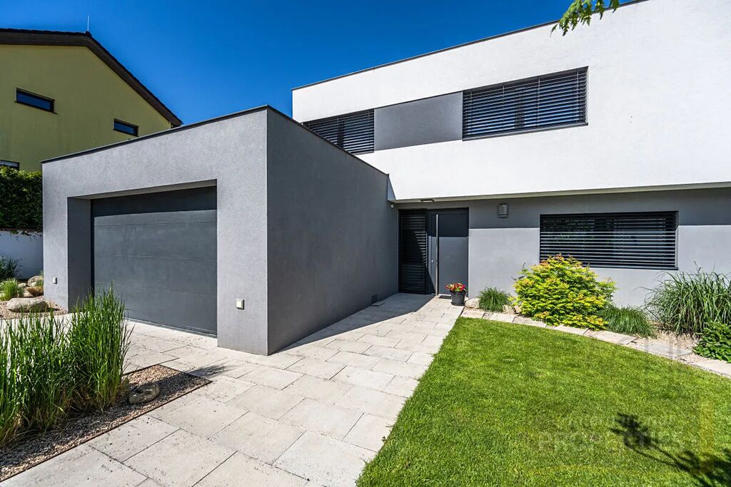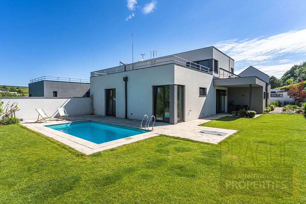Elegantní moderní dvougenerační vila ve vyhledávané klidné lokalitě v obci Tuchoměřice. Tento nový nadčasový dům je postaven na velkém pozemku s nádhernou zahradou, která díky vzrostlé vegetaci zajištuje absolutní soukromí a klid. K dispozici dva bazény.