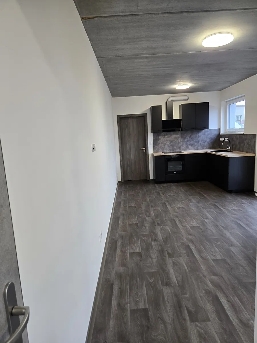 Byt má praktické dispoziční řešení - obývací pokoj (23m2) s kuchyňskou linkou (čistý design, včetně vestavěných spotřebičů), plně dostačující ložnici (10m2), koupelnou (7m2) se sprchovým koutem a místem na pračku se sušičkou. K bytu rovněž patří terasa (+12m2). Okna přinášejí dostatek přirozeného světla do celého bytu. Byt má přípravu jak na předokenní žaluzie, tak na montáž klimatizace.