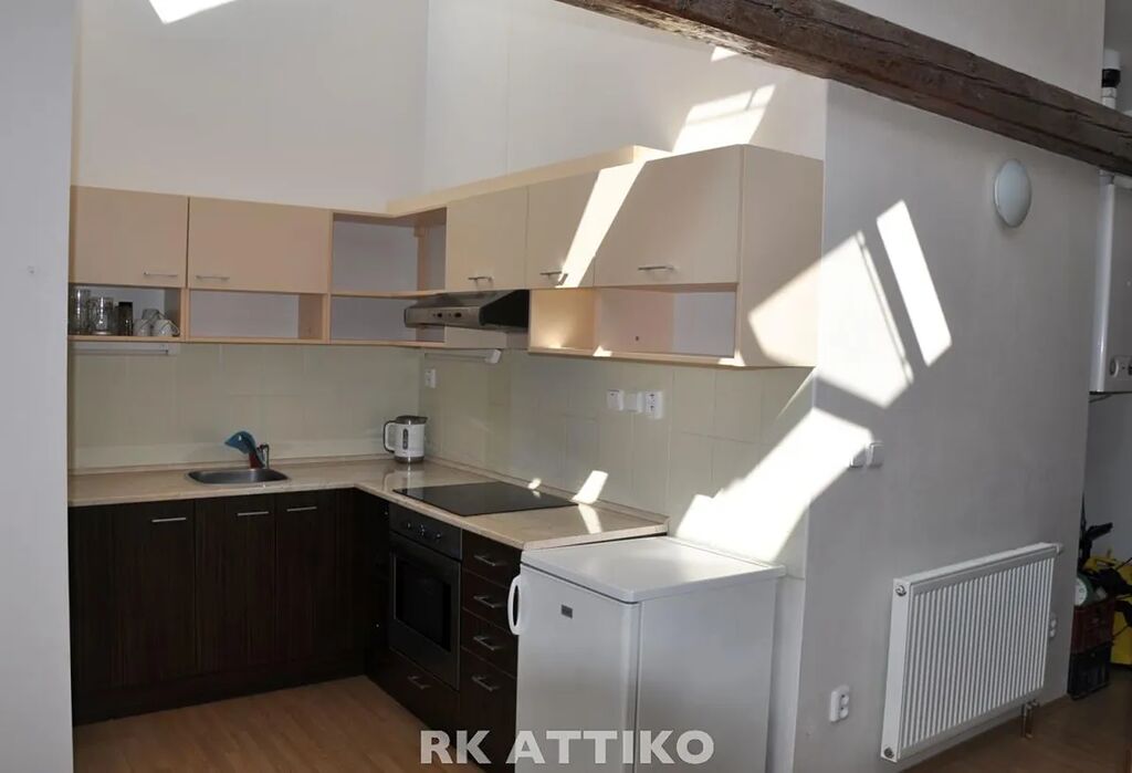 Pronájem půdního bytu 2+kk o ploše 53 m2, situovaném ve 4.patře bez výtahu, v cihlovém historickém domě po rekonstrukci, v klidné jednosměrné ulici u parku, nedaleko od centra - do pěší zóny centra jsou to tři zastávky tramvají nebo trolejbusem.