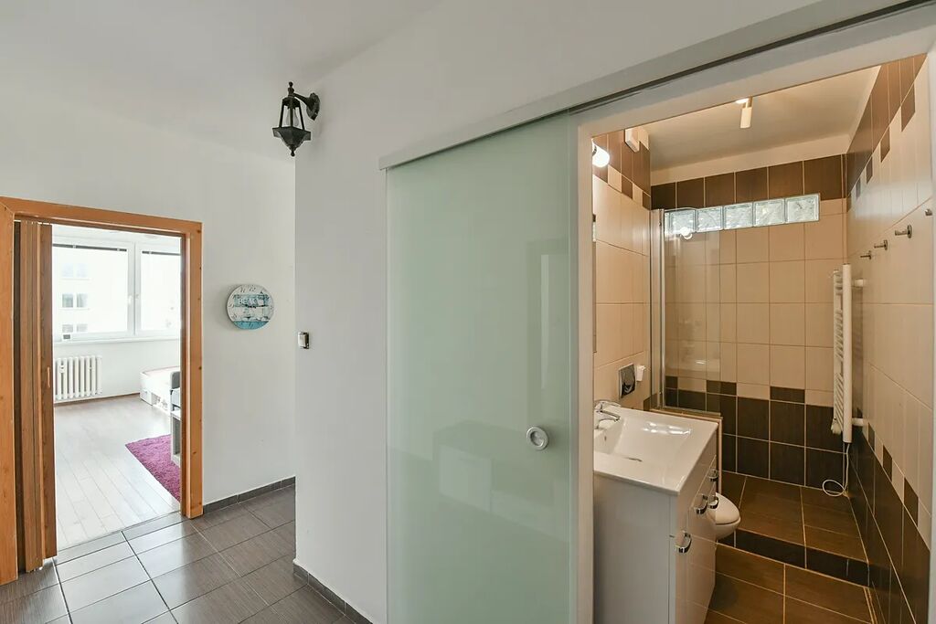 Koupelna je vybavena sprchovým koutem. Stoupačky jsou již v plastu, osazené měřiči teplé i studené vody. Ty jsou v bytě i na ústředním dálkovému topení. Nízké provozní náklady jen ve výši 1.628 Kč/měs. (v tom je již zahrnut fond oprav 516 Kč), dále mají nájemníci nastavené své zálohy ve výši 2.470 Kč/měs.