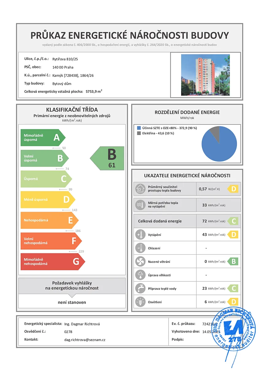 Byt se nachází v 6. nadzemním podlaží (5. patro) revitalizovaného panelového domu s dvěma výtahy a nabízí celkovou podlahovou plochu 51,6 m². Dispozičně je velmi prakticky řešen – oba pokoje jsou neprůchozí, což zajišťuje dostatek soukromí pro všechny obyvatele. Byt prošel v nedávné době renovací – má zděné bytové jádro, plastová okna, novější podlahové krytiny, upravenou koupelnu i vcelku novou kuchyň, a působí tak velmi příjemným dojmem.