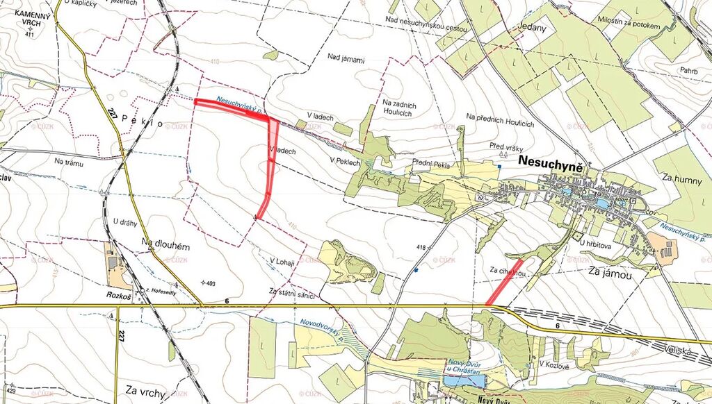 V katastrálním území Nesuchyně, okres Rakovník, nabízím k prodeji soubor zemědělských pozemků zapsaných na listu vlastnictví č. 322. Jedná se o parcely č. 4119, 4118, 4117, 4116, 4097, 4092, 3810 a 2962.