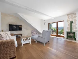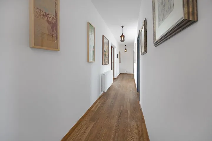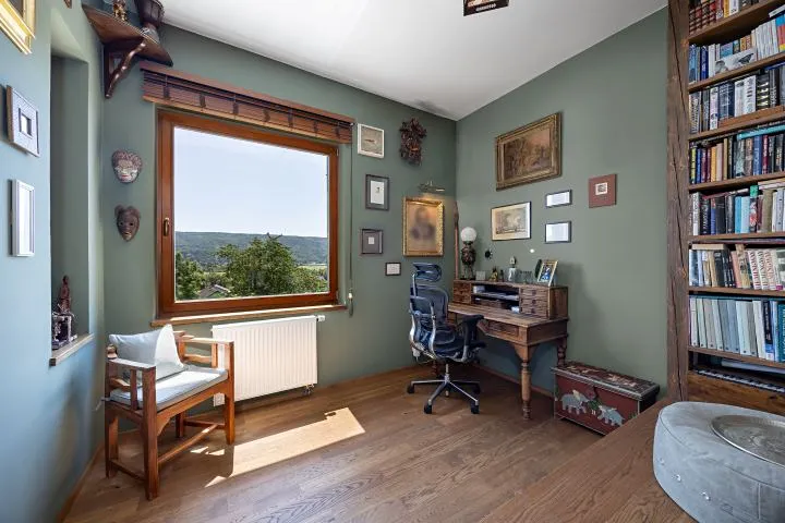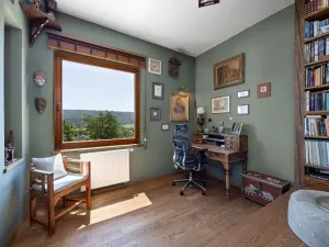 Interiér domu je částečně vybaven a nabízí velkorysé prostory s pěti pokoji, které poskytují komfort pro každého člena rodiny. Dům je postavený ze smíšených materiálů, což přispívá k jeho unikátnímu charakteru. Dispozice: 1.NP-2x zděný sklep, parkování. 2.NP-vstup, prostorný obývací pokoj s vchodem na letní terasu a přední zahradu s výhledem, kde se nachází vířivka, kuchyně, pokoj(pracovna), koupelna s WC, schodiště do patra. 3.NP-prostorná chodba se vstupem na zadní zahradu, 3x ložnice každá s krásným výhledem, koupelna s WC.