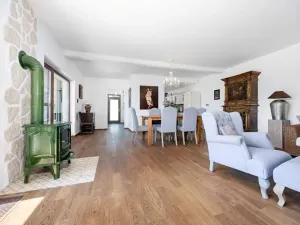 Tento rodinný dům prošel rekonstrukcí a nabízí užitnou plochu 200 m². Na pozemku o celkové ploše 811 m² naleznete také krásnou terasovitou zahradu, která je osázena středomořskými rostlinami a bylinami a disponuje závlahovým systémem, ideální pro rodinné hry a odpočinek. Dům má k dispozici sklep, což nabízí další praktické úložné prostory. Součástí zahrady je též vyhřívaný bazén, který je skvělý pro osvěžení během horkých letních dnů, venkovní kryté sezení u bazénu s úložnými prostory. Parkování je zajištěno pro 4 automobily, což ocení především rodiny s více automobily nebo návštěvy.