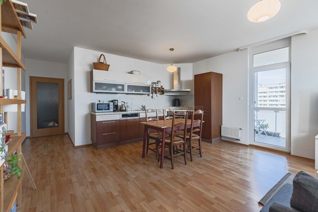 Nabízíme k pronájmu krásný a světlý byt o velikosti 2 + kk / B, situovaný v 6. patře novostavby (2010), která se nachází v části obce Krč, Praha 4. Celková plocha bytu činí 69 m², přičemž užitná plocha je 64 m² + balkon. Byt disponuje balkónem o ploše 5,5 m², který nabízí příjemný prostor pro relaxaci a hezký výhled do parku. K bytu náleží sklep 2,5 m² a garážové stání ve 2PP domu.