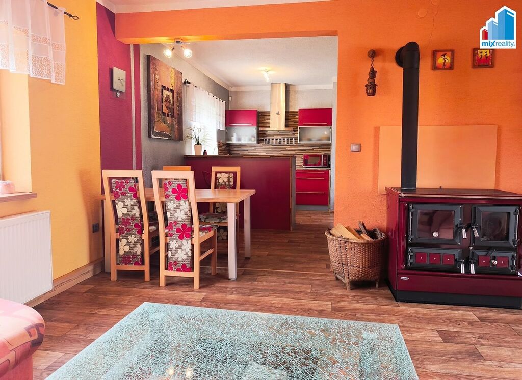 K dispozici jsou hned tři možnosti vytápění – tepelné čerpadlo, kotel na tuhá paliva a stylová krbová kamna, která v zimních měsících navodí příjemnou atmosféru. Součástí nemovitosti je také velká samostatně stojící dvojgaráž s praktickým úložným prostorem.