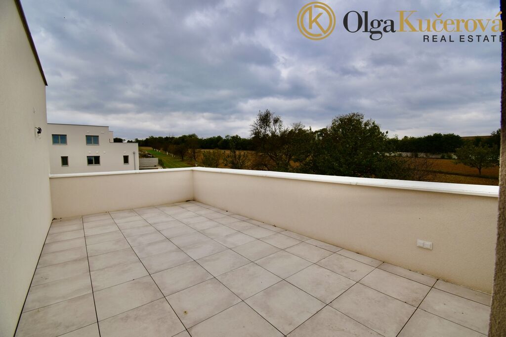 Byt o dispozici 4+kk a výměře 113 m² je situován v 1. patře jihozápadní části domu. Dispozičně nabízí tři ložnice, prostorný obývací pokoj s kuchyňským koutem a přímým vstupem na velkorysou terasu o výměře 27 m². K dispozici je dále koupelna s vanou i sprchovým koutem, samostatné WC a technická místnost s prádelnou.