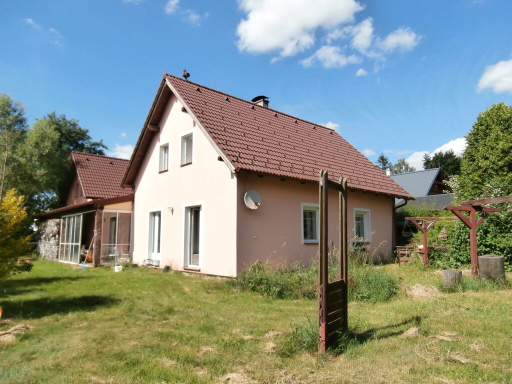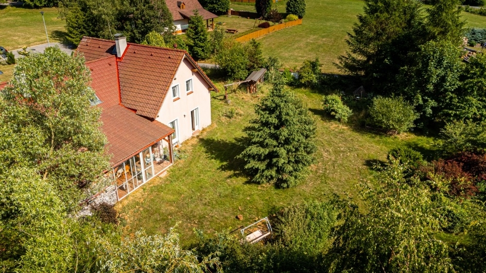 Dům stojí na prostorném pozemku o rozloze 2 000 m², který nabízí dostatek soukromí, udržovanou zahradu, udírnu, přístřešky na dřevo a sušák na prádlo, a navíc je zde zateplená bouda pro psa. Krytá terasa cca 30 m² je ideálním místem pro odpočinek, posezení s rodinou nebo přátele během letních večerů.