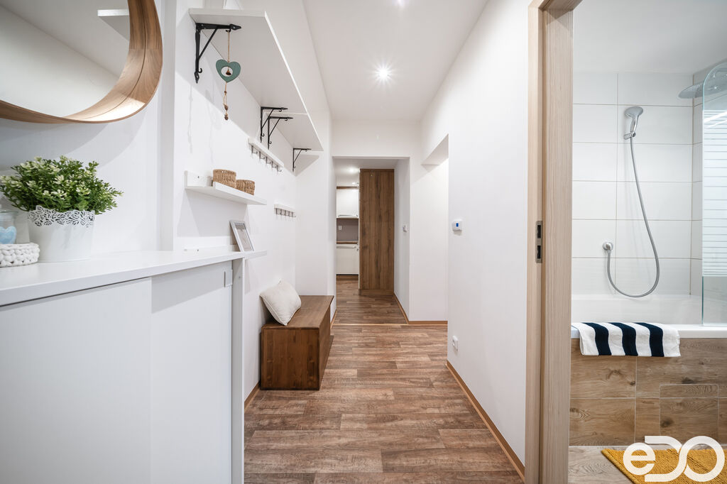 Byt původně vznikl přestavbou z 2+1 na moderní 3+kk a prošel zdařilou rekonstrukcí. Najdete zde kuchyňskou linku se spotřebiči, vestavěné skříně a koupelnu s vanou. O komfortní bydlení se postará podlahové vytápění a plastová okna.