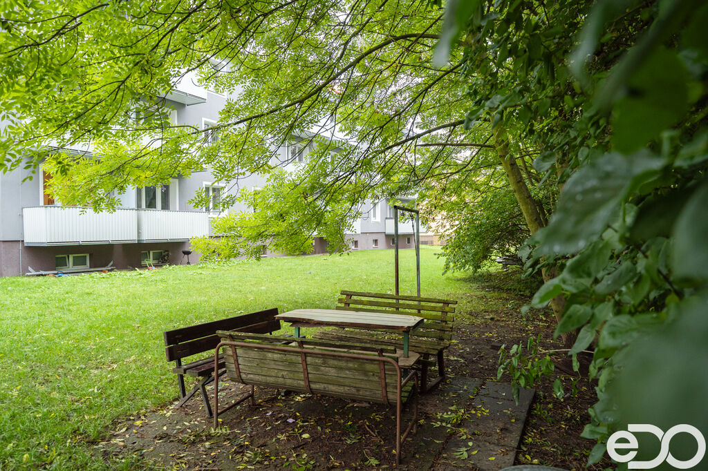 K bytu náleží možnost užívání zahrady, která poskytne příjemné místo k odpočinku i rodinnému posezení.