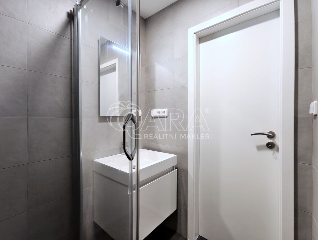 Byt je vám k dispozici s výjimkou základní kuchyňské linky a šatní skříně v předsíni nezařízený - právě tak, jak jej vidíte na fotografiích a virtuální prohlídce. Jeho skvělým bonusem je prostorná šestimetrová lodžie přístupná z ložnice a také komora přímo u bytu. Mimo toto příslušenství dále můžete ve společných prostorách domu využít vlastní sklepní kóji, společnou kočárkárnu / kolárnu či sušárnu prádla. Těšit se také můžete na zcela nové žaluzie, které ještě nejsou z fotografií patrné.