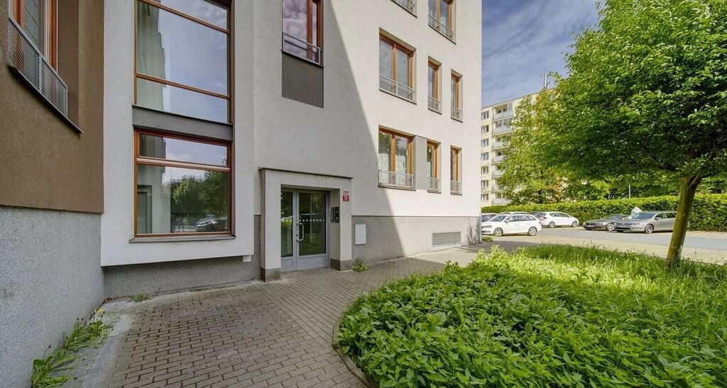 Vjezd do garáže je z uzavřeného vnitrobloku s přístupem pouze pro obyvatele/nájemce objektu.