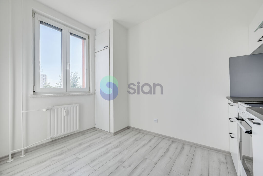 Nabízíme k podnájmu byt o dispozici 2+1 a celkové ploše 44 m², který se nachází ve třetím nadzemním podlaží z osmi v panelovém domě s výtahem. Byt je ve velmi hezkém a udržovaném stavu a bude k nastěhování přibližně za dva týdny.