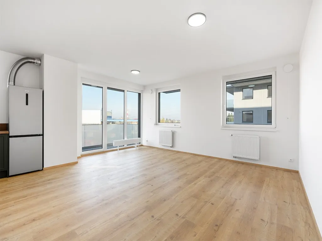 Byt se nabízí nevybavený, avšak s kompletně zařízenou kuchyňskou linkou včetně varné desky, trouby, digestoře, myčky a vestavěné pračky se sušičkou. Výhodou je také praktická komora / šatna, která poskytuje dostatek úložného prostoru.