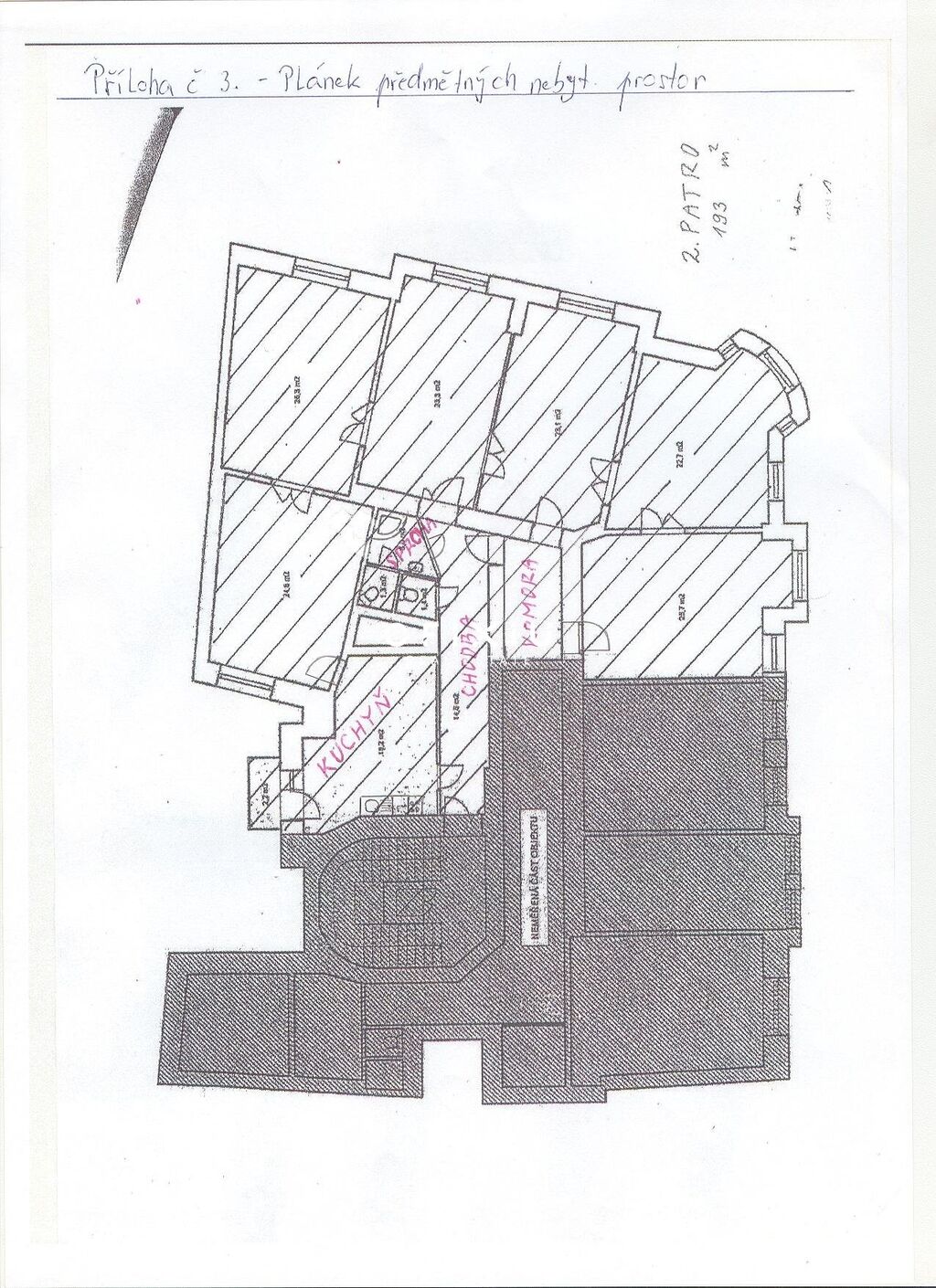 Nabízíme k pronájmu prostorné nebytové prostory o celkové výměře 193 m², které se nacházejí ve 2. patře domu na rohu ulic Kobližná a Kozí v samém centru Brna. Prostory jsou již více než 15 let využívány jako kanceláře, konkrétně jazyková škola. Ve druhém až šestém patře domu se nacházejí výhradně byty, přičemž tento jediný prostor je využíván k nebytovým účelům.