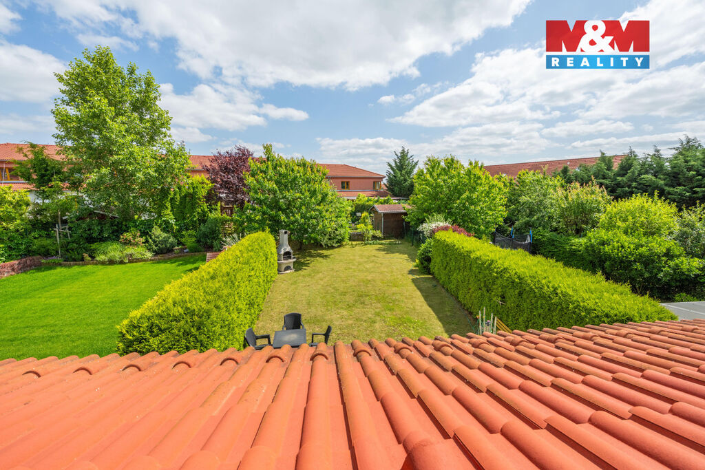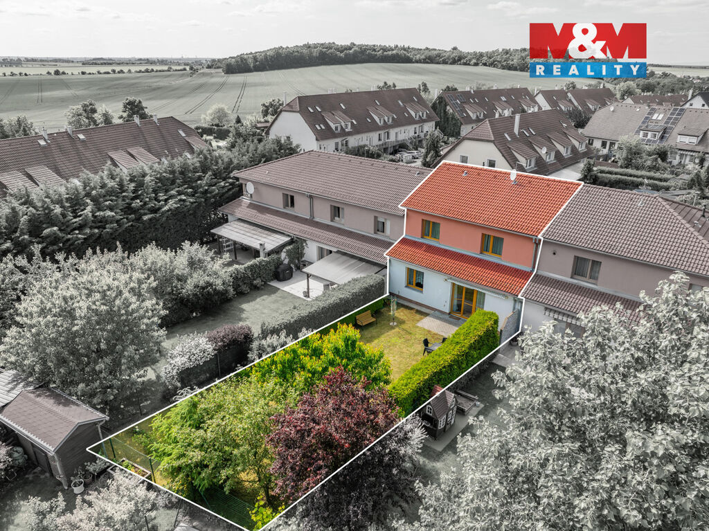Nabízíme k prodeji řadový rodinný dům 5+kk z roku 2008 ve Velkých Přílepech, Praha-západ. Dům má celkovou plochu 175 m2 a plocha pozemku je 344 m2. K domu náleží nádvoří, prostorná garáž o ploše 18 m2 a zahrada o rozloze 174 m2. Ze zádveří vede vstup do garáže pro jedno auto a do pokoje s pěkným výhledem. V přízemí se dále nachází vstupní chodba, předsíň, obývací pokoj s kuchyňskou linkou a jídelnou, koupelna se sprchovým koutem, toaleta a komora. Z obývacího pokoje je vstup přes terasu na zahradu. V patře jsou dva dětské pokoje, velká koupelna s vanou, WC a dvěma umyvadly, šatna a hlavní ložnice se vstupem do vlastní koupelny s WC a sprchou. Vytápění a ohřev teplé vody je řešen pomocí plynového kotle. Na metro Bořislavka je to 17 minut hromadnou dopavou. Bydlení je ideální pro rodinu s dětmi, kdy všichni budou mít dostatek prostoru. Pokud si přejete bydlení blízko Prahy, ale zároveň v klidném venkovském prostředí, je tato nabídka ideální právě pro vás!