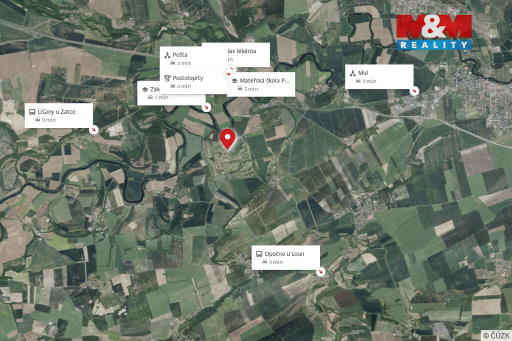 Vzdálenost do Loun a Žatce cca 15 min zajišťuje pohodlný dojezd za všemi potřebnými službami, školami a kulturou. Veškerá občanská vybavenost se nachází také v obci Postoloprty vzdálené cca 3 km.