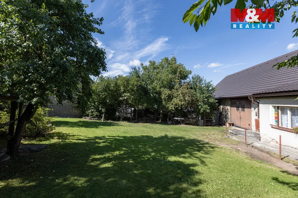 Dominantou je rozlehlá okrasná zahrada o výměře 830 m², poskytující soukromí, dostatek prostoru pro odpočinek, rodinná posezení či zahradničení. Na pozemku se nachází stodola, ideální k uskladnění, dílně či pro hobby využití, a kopaná studna o hloubce 4,5 m vhodná pro zalévání a hospodaření s vodou.