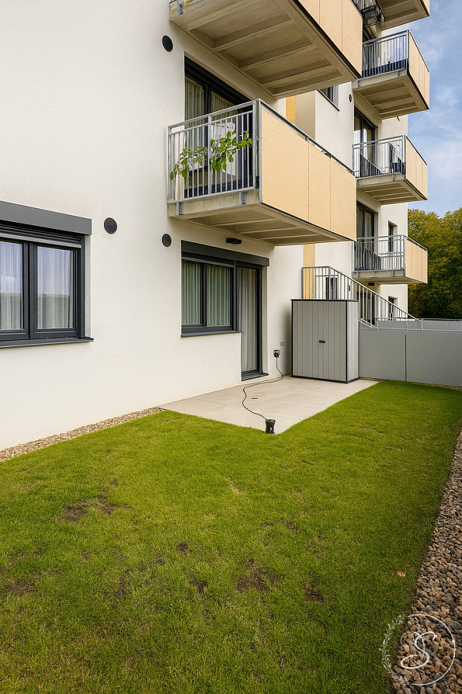 Nabízíme k dlouhodobému pronájmu elegantní, plně zařízený byt 2+kk o rozloze 52 m² s privátní zahradou 32 m², situovaný v 1. nadzemním podlaží moderní novostavby cihlového, nízkoenergetického domu v prestižní a klidné lokalitě Prahy 9 – Kbely, ulice Sedlářova.