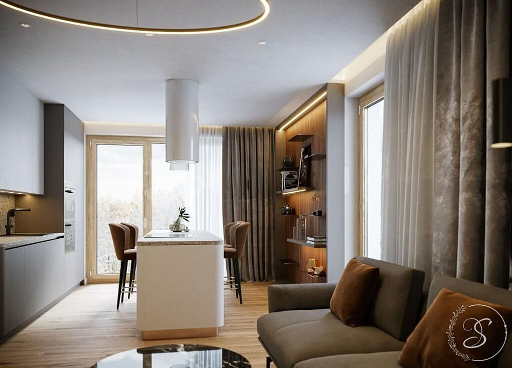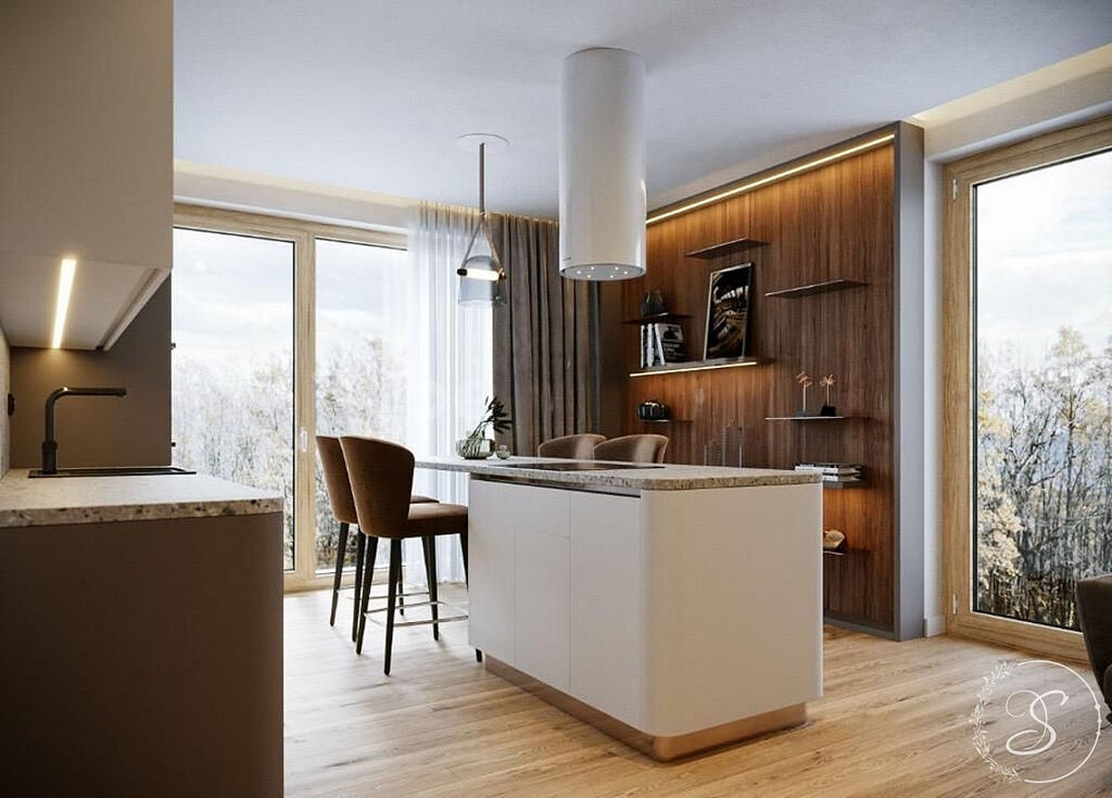 Byt je situován ve 2. patře nízkoenergetického cihlového domu a je kompletně zařízen – k dispozici je moderní kuchyňská linka se spotřebiči (lednice, trouba, varná deska, kávovar, konvice, příbory a talíře). Dále je vybaven pračkou, sušičkou a fénem na vlasy. Interiér je světlý díky třem velkým oknům, která jsou opatřena zatemňovacími závěsy pro úplné zastínění.