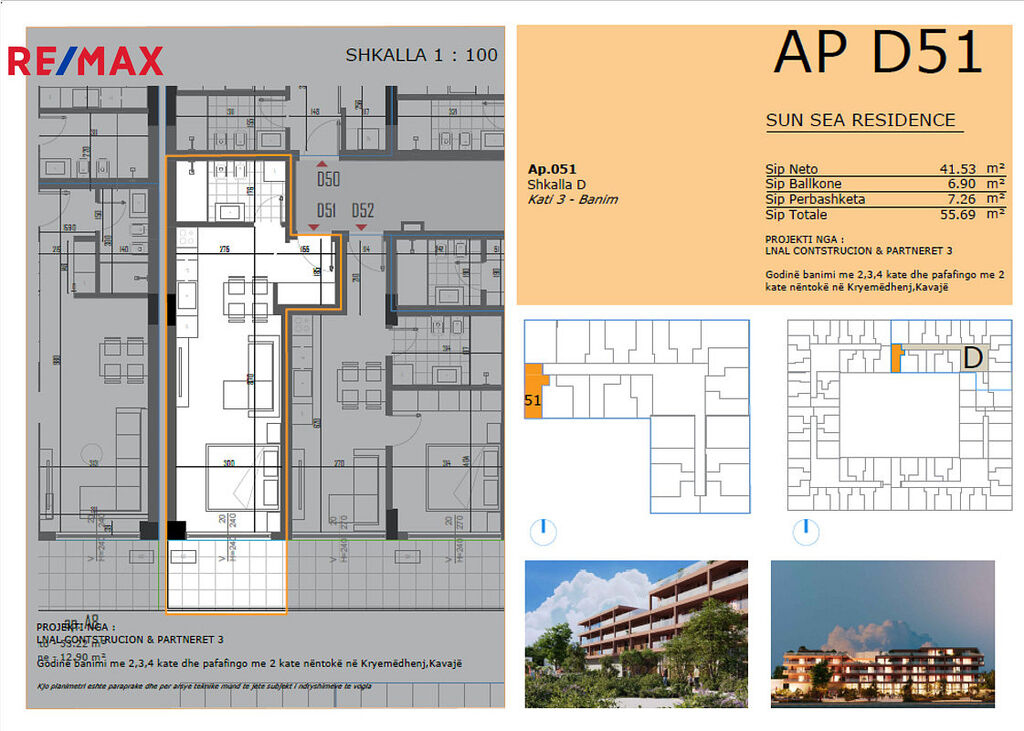 Nabízíme k prodeji moderní byt o dispozici 1 + kk v prestižní lokalitě Obce Golem, okres Kavajë v developerském projektu před dokončení. Termín dokončení stavby je 09/2026. Tato cihlová novostavba se nachází ve třetím nadzemním podlaží pětipodlažního objektu a nabízí celkovou plochu 55,69 m², z toho užitnou plochu 41,53 m². Součástí bytu je balkon o velikosti 6,9 m², ideální pro relaxaci či venkovní posezení.
