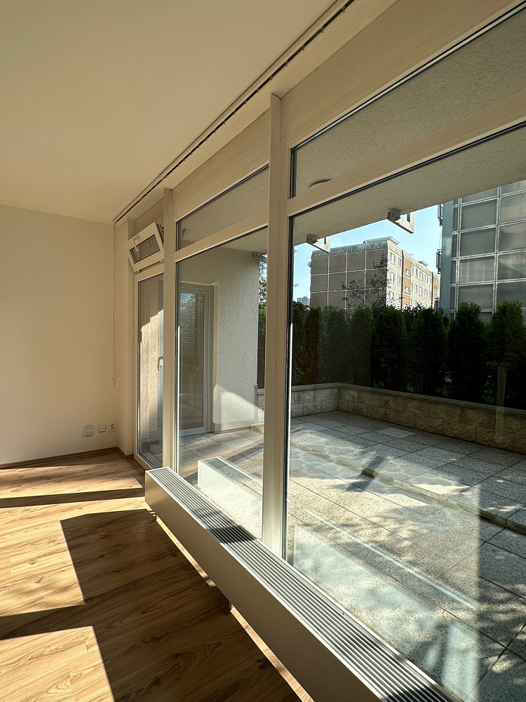 Dlouhodobý pronájem zcela nekuřáckého bytu 3+kk s velkou jižně orientovanou terasou (15 m²) v rezidenčním bytovém komplexu LB TYRŠOVA / dům B2 z roku 2002/03 - komfortní bydlení na prestižní adrese - bydlete i Vy v novém - právě dokončena rekonstrukce bytu. Celý bytový komplex se nachází v atraktivní a vyhledávané lokalitě - přímo v centru města Liberce. Vše dokonale zabezpečeno - vchod přes čipovou ochranu - rezidenční zóna s bezpečnostními kamerami, security,. Klidová a uzavřená zelená atria s dětskými koutky, lavičkami a zeleň zaručující dostatečné soukromí a komfort městského bydlení. K bytu náleží jedno parkovací stání v halové garáži / P79 v 1. podzemním podlaží, další možno výhledově pronajmout za zvýhodněnou cenu.