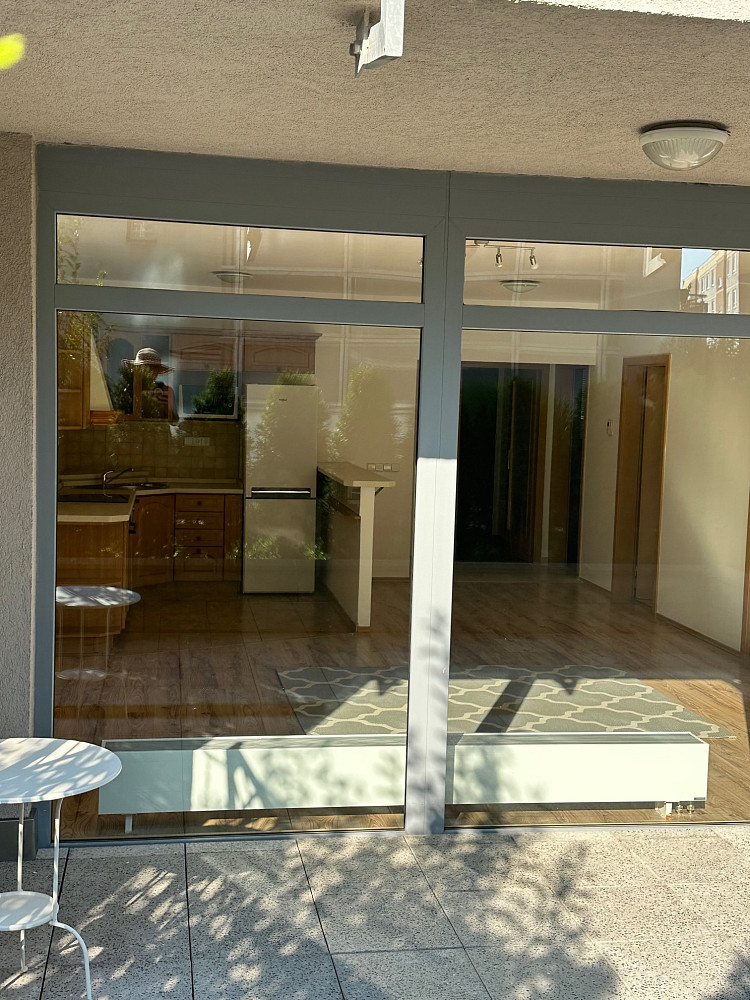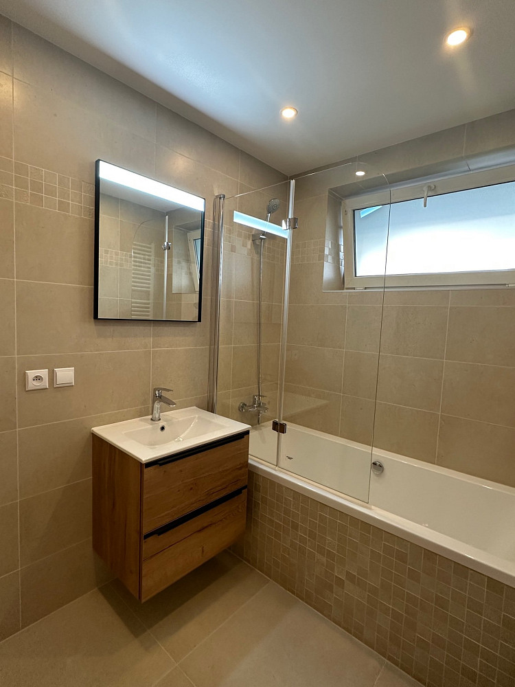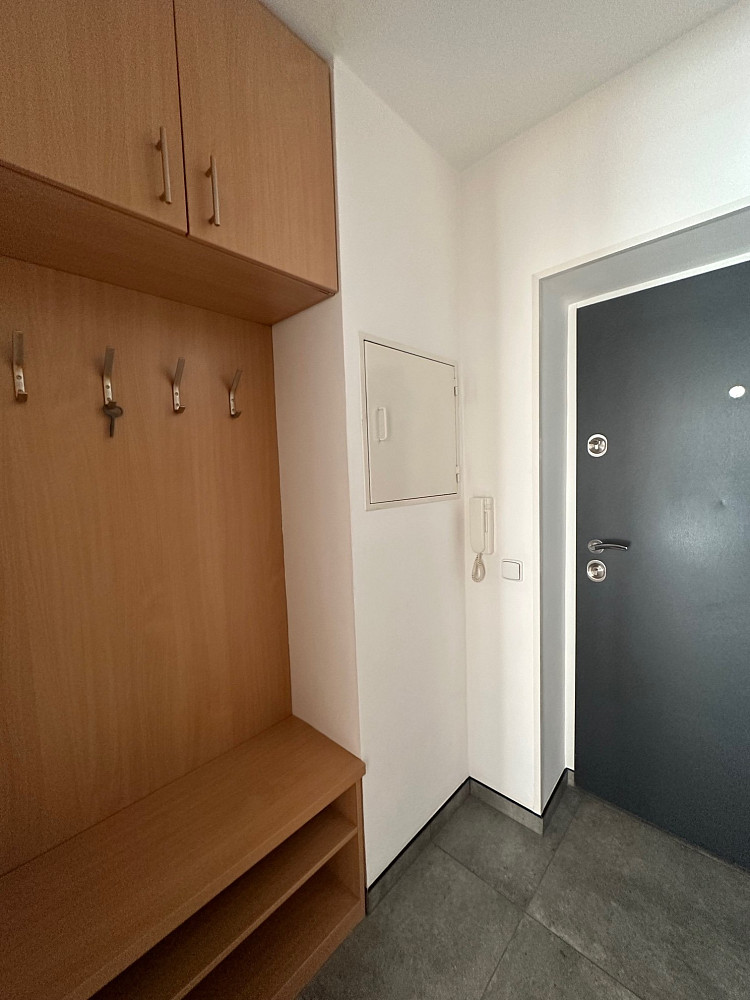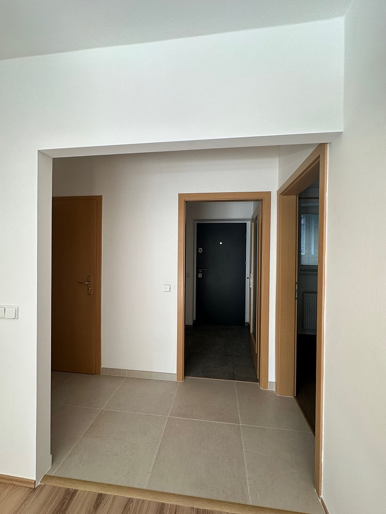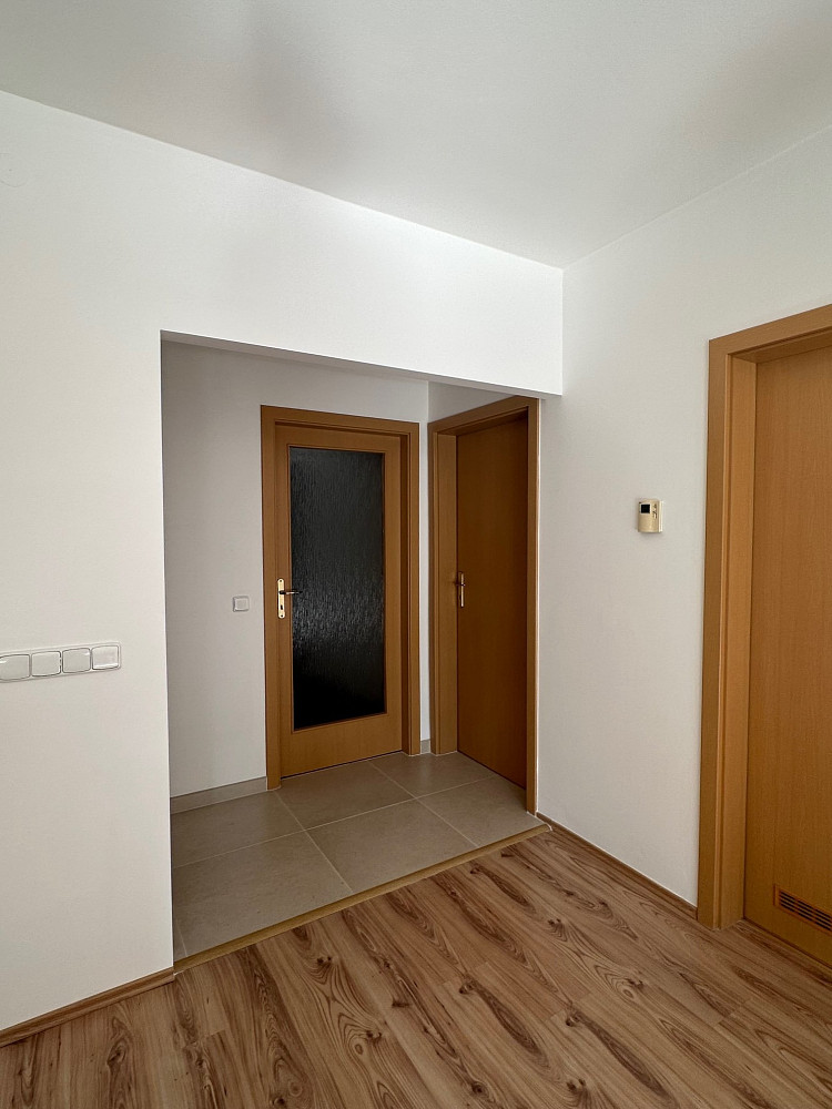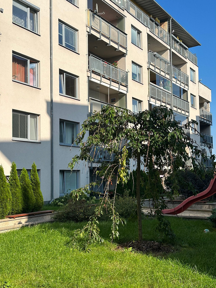 Dominantou bytu je velký obývací pokoj s vkusně řešeným kuchyňským koutem - rohová kuchyňská linka včetně spotřebičů (myčka, nová indukční varná deska a trouba, komínová digestoř, lednice s mrazákem, mikrovlnná trouba), součástí je barový pult. Aktuálně čistě bíle vymalováno, kvalitní plovoucí lamino podlaha / stáří 5 let, žaluzie, garnyže, svítidla. Nová koupelna i WC mají okna + koupelnový nábytek, vana, přípojka na pračku 600 mm / prostor pro sušičku. Jednoznačnou předností je bytová šatna - vybavena vestavěnou šatní skříní - nepostradatelný úložný prostor. Instalovány nové bezpečnostní dveře. Dominantou bytu je slunná terasa - osvětlena, venkovní dlažba, vstupy ze dvou pokojů - z obývacího pokoje celo prosklená stěna (28 m²) a z ložnice (15 m²), druhá ložnice (10 m²) neprůchozí, přístupná z předsíně. Terasa je úžasné místo jak pro vaše děti - možno doplnit malý bazén, houpací síť, snadný přístup na společnou venkovní terasu (pískoviště, klouzačka, zeleň); tak i pro vaši večerní sklenku dobrého vína.