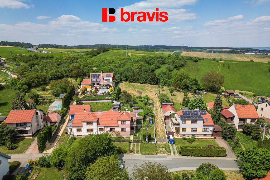 Pozemek se nachází v kopcovitém terénu s nádherným výhledem na celé Říčany.