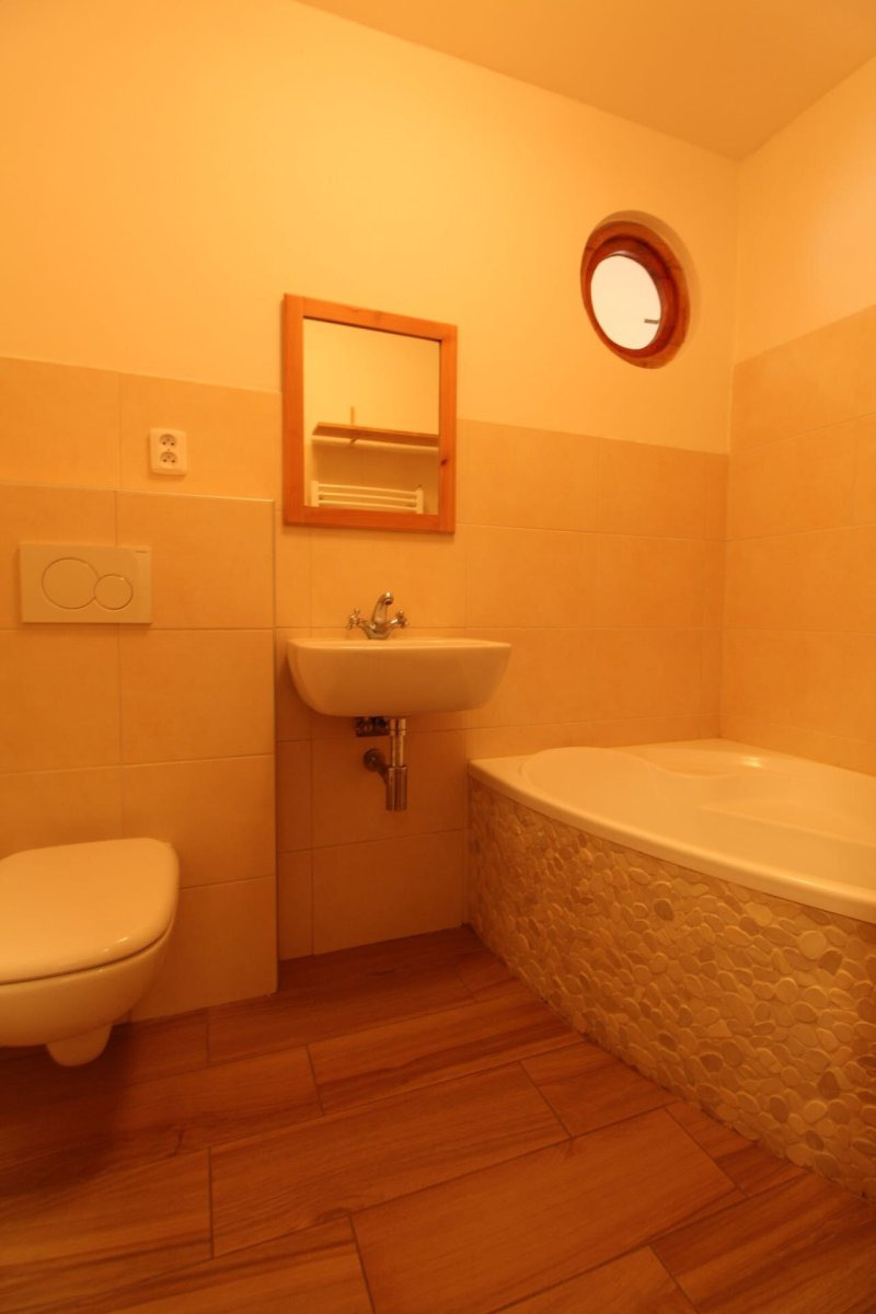 Nabízí se nevybavený. Kuchyně disponuje myčkou, elektrickou troubou, plynovým sporákem a digestoří. Obývací část je nezařízená. Součástí ložnice je prostorná šatní skříň. V koupelně najdeme vanu a závěsnou sanitu.