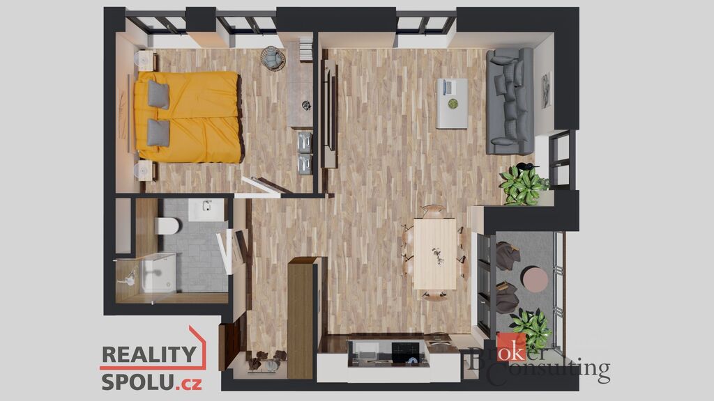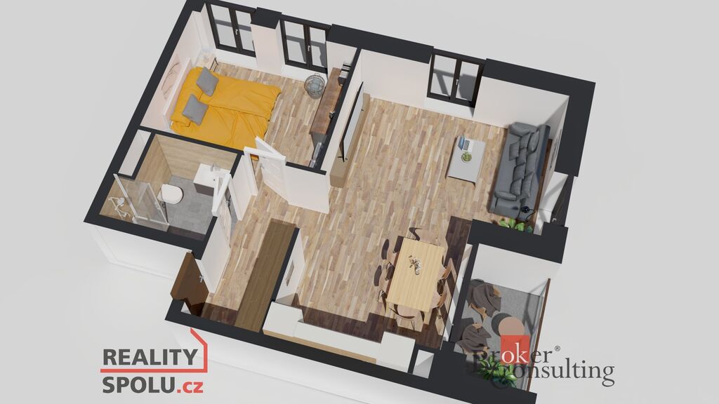Nabízíme byt č. 5 o dispozici 2+kk a velikosti 53,73 m² ve 2. nadzemním podlaží projektu Rezidence Důl Michal.