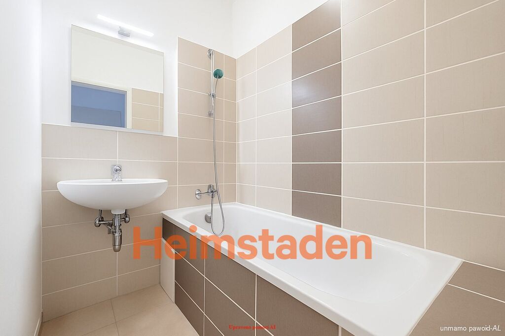 Koupelna je po kompletní renovaci – elegantní obklady, vana, žebříkové topení, umyvadlo a oddělené WC zaručí pohodlí i praktické využití.