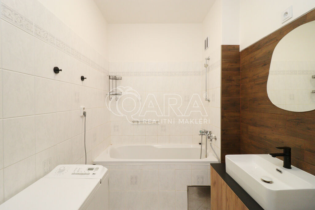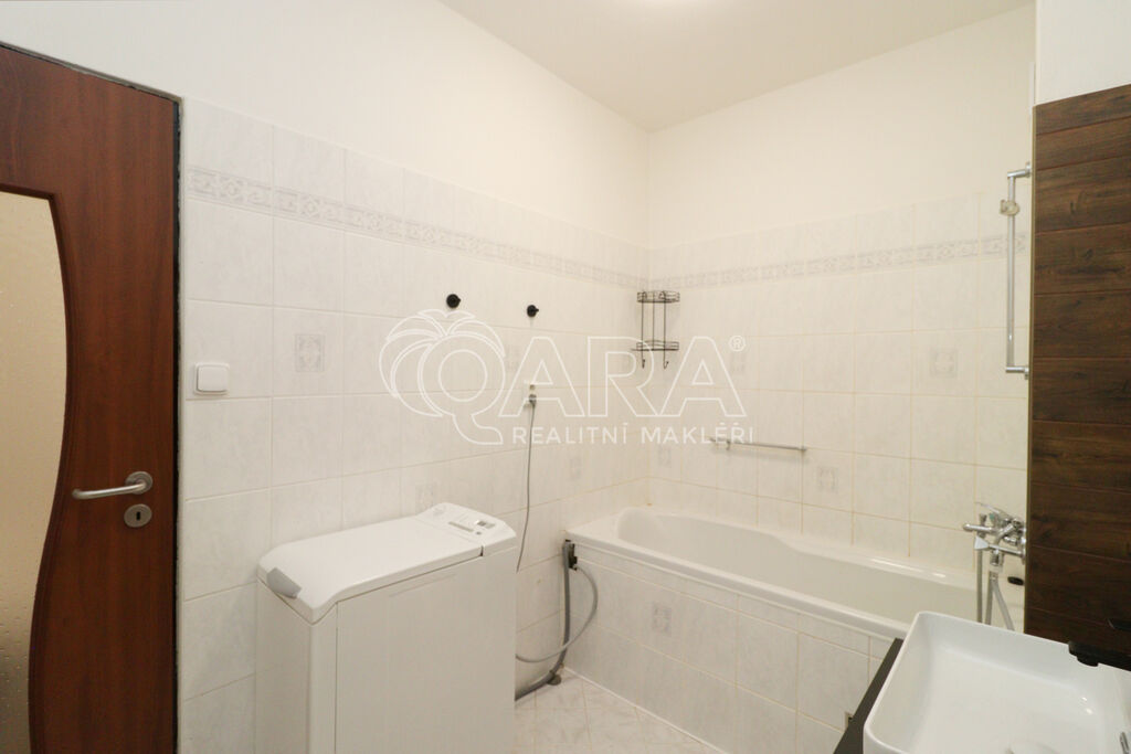 Koupelna a WC jsou odděleny dveřmi, přičemž v koupelně je umístěna pračka na prádlo s horním plněním. Dva pokoje disponují prostornými zabudovanými šatními skříněmi se zrcadly, což zajišťuje dostatek úložného prostoru. V obývacím pokoji o velikosti 19 m² se nachází lodžie o ploše 5 m², směřující na jihozápad, která nabízí příjemný výhled a dostatek světla, přičemž prosklení lodžie zajišťuje komfortní využití.