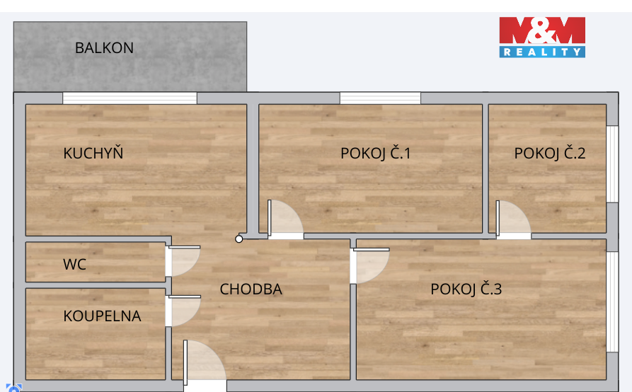 Výhodou tohoto bytu je jeho dispoziční řešení a zasklený, slunný balkón.