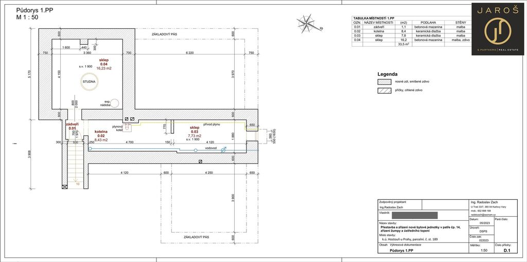 Užitná plocha 1.PP 34 m2