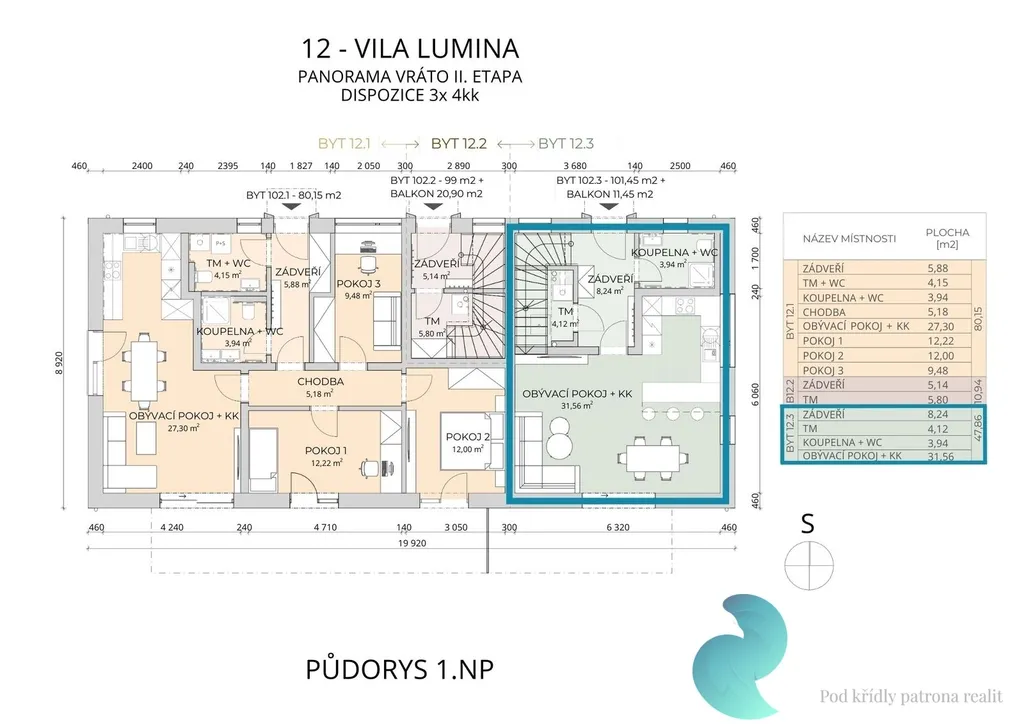 Byt o dispozici 4+kk (101,45 m²) je součástí rezidenčního projektu PANORAMA VRÁTO, který přináší klidné a komfortní bydlení v oblíbené lokalitě Vráto.