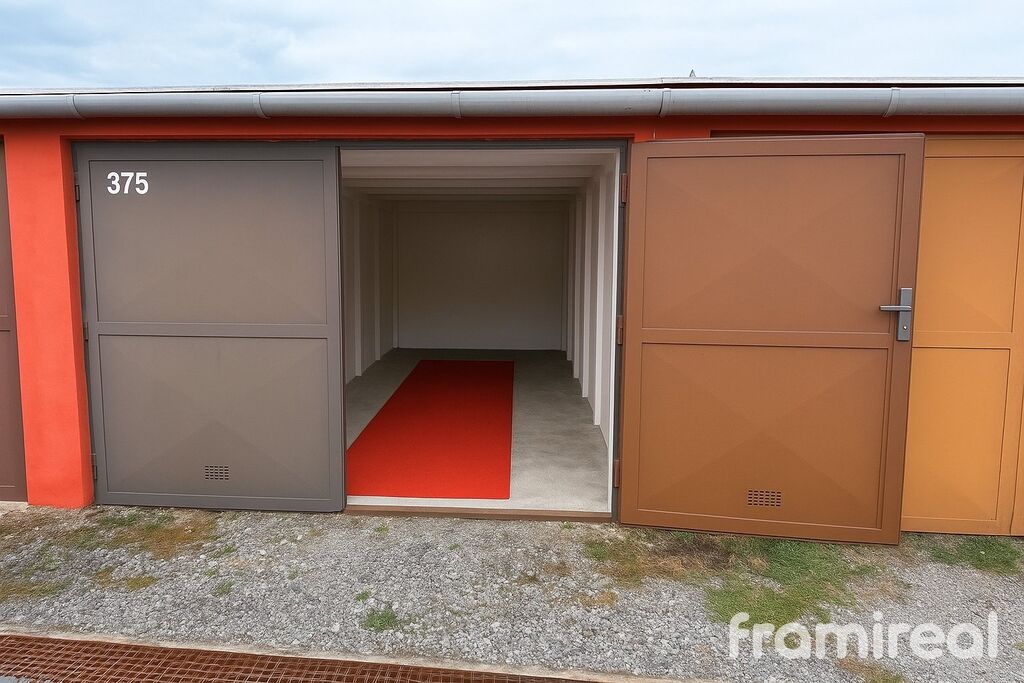 Se souhlasem majitele nabízíme k prodeji garáž v udržovaném garážovém areálu v Brně - Líšni (PSČ 628 00) při ulici Jedovnická a Elplova. Garáž je ve velmi dobrém technickém stavu – suchá, nikde nezatéká, vhodná pro parkování nebo jako skladový prostor. Vrata garáže jsou plechová, dvoukřídlá, střecha garáže plochá. Do garáže je zavedena elektřina 220 V s elektrickým měřičem. Rozměry vrat: šířka 300 cm, výška 200 cm.
