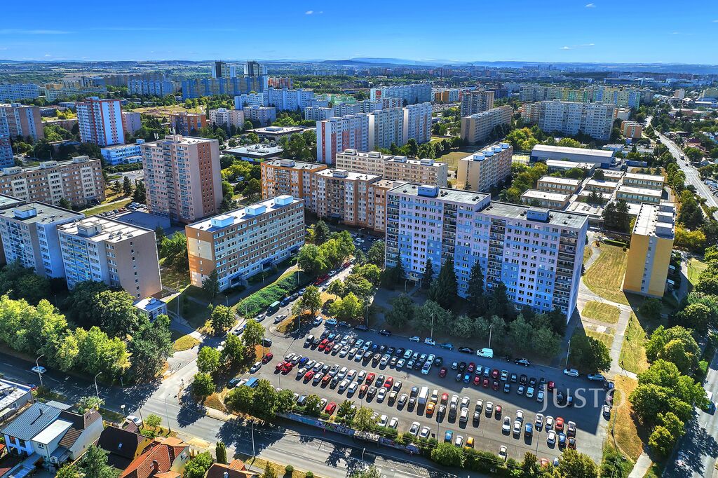 Umístění domu je strategické. Kousek od velkého parkoviště, polikliniky, hlavně od stanice metra ,,C" a autobusového nádraží.