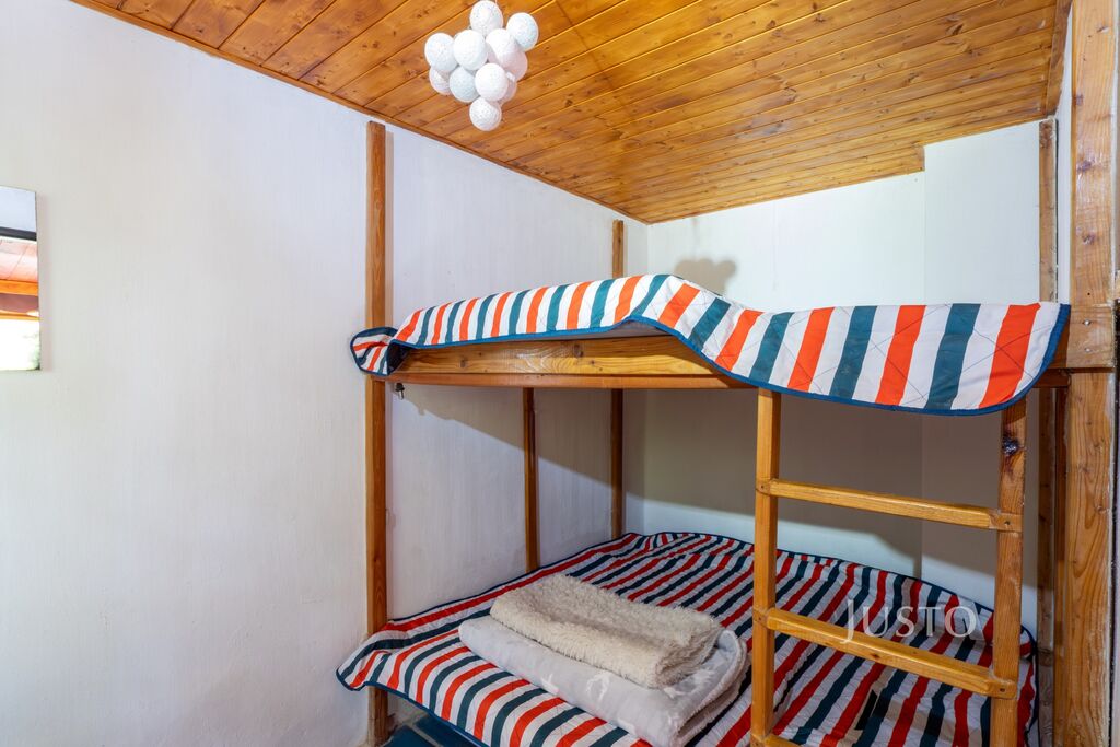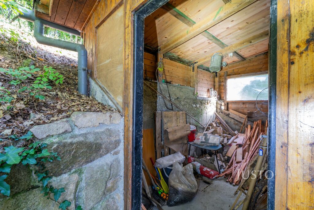 Podlahy jsou betonové, okna, dveře i stropy dřevěné, za chatou se nachází kůlna a suchý záchod umístěný v lese. Pod chatou jsou navíc úložné prostory.