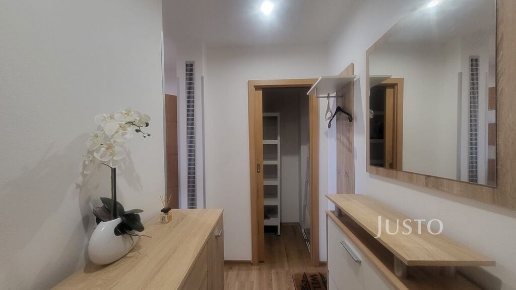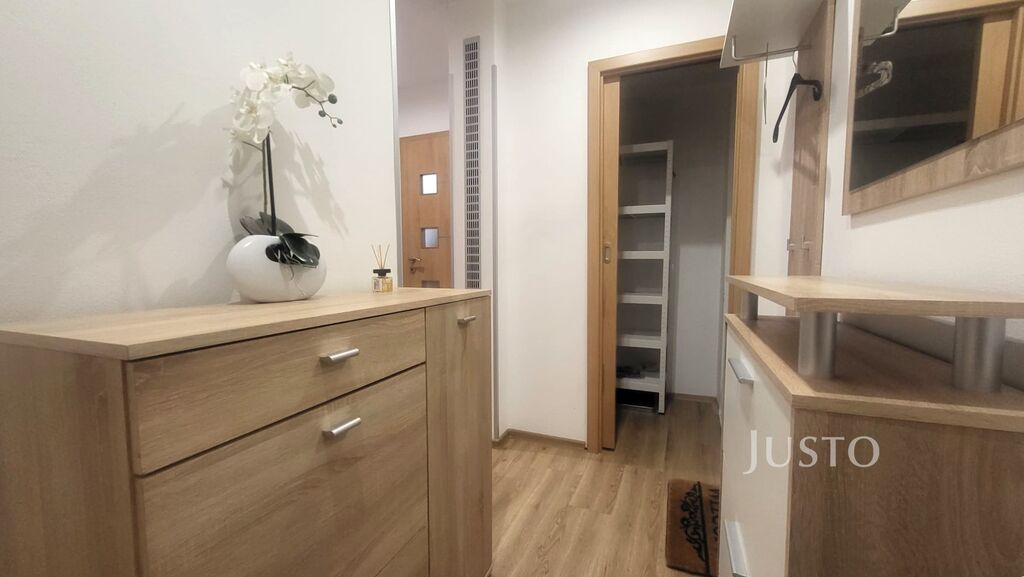 Při vstupu do bytu je předsíň, kde je botník a místo pro odložení svrchních oděvů. Hned ve vstupní chodbě je praktická šatna.
