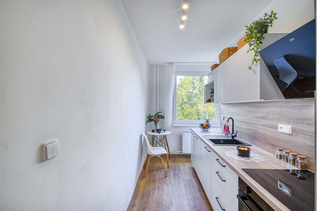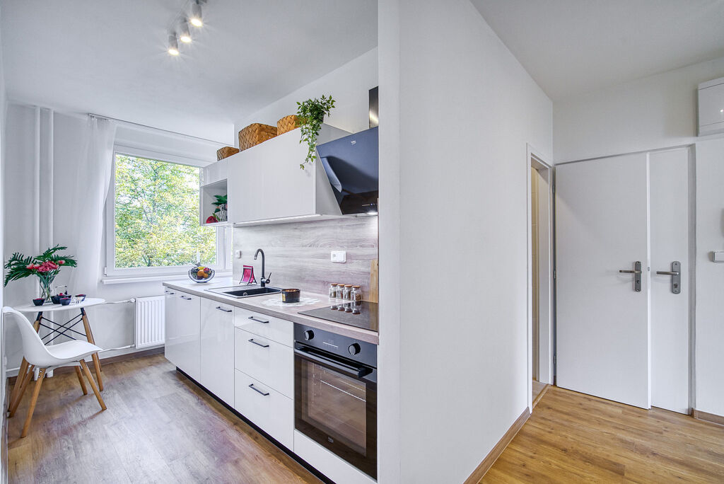 Nabízíme k pronájmu krásný byt 3+1 a po kompletní rekonstrukci. Byt se nachází ve 2. nadzemním podlaží (1 patro) panelového domu a disponuje novou kuchyňskou linkou s indukční varnou deskou, elektrickou pečící troubou, myčkou a digestoří. V koupelně se nachází sprchový kout, umyvadlo se skříňkou, koupelnová skříňka se zrcadlem a toaleta. Součástí pronájmu je i komora ve společných prostorách. Byt není vybaven nábytkem. Nájemné zde činí 14 000,- Kč, záloha na služby 2 500,- Kč pro 1 osobu + 500,- Kč každá další osoba. Vratná kauce je 25 000,- Kč. Při rezervaci se platí provize realitní kanceláři ve výši 17 000,- Kč. Elektřina se přepisuje na nájemce. Byt je volný ihned. V případě zájmu o prohlídku či více informací neváhejte kontaktovat makléře.