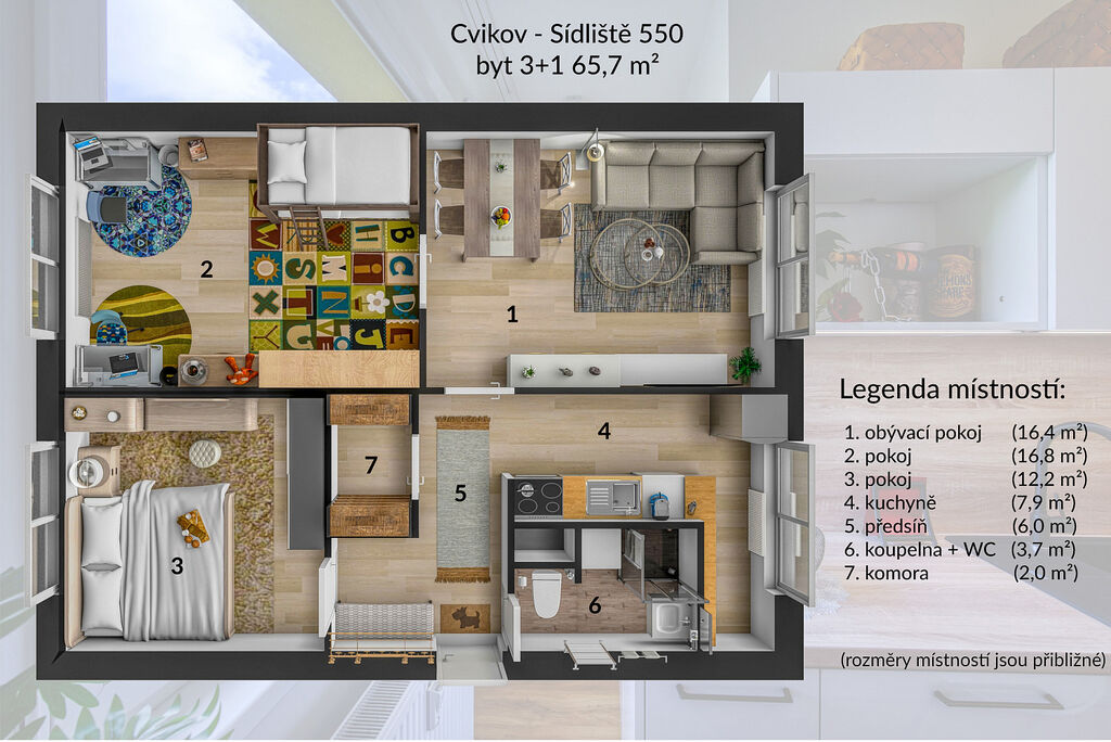 Pronájem krásného bytu 3+1, 67,35 m², Cvikov, Sídliště 550