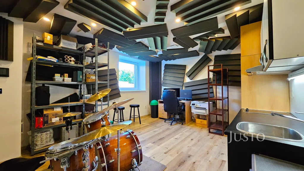 • Samostatná místnost s kuchyňkou – aktuálně využívána jako nahrávací studio, ideální však i jako garsonka či prostor pro jakékoliv komerční využití